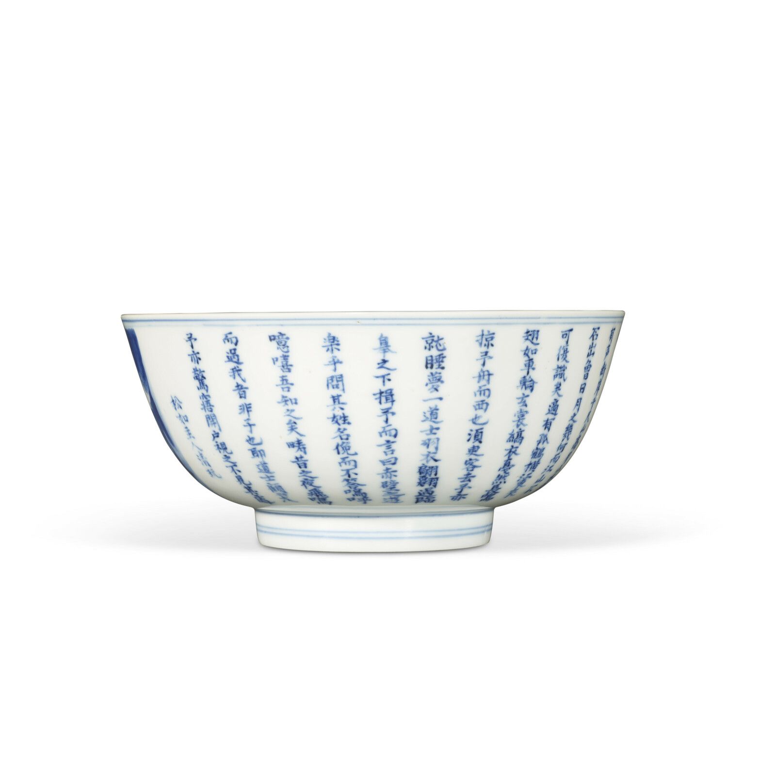 Lot 2887. A blue and white inscribed 'Latter ode to the Red Cliff' bowl, Kangxi six-character mark in underglaze blue within a double circle and of the period (1662-1722); 15.5 cm diam, Japanese wood box. Price realised HKD 126,000 (Estimate HKD 120,000 – HKD 180,000) © Christie's Images Ltd 2024