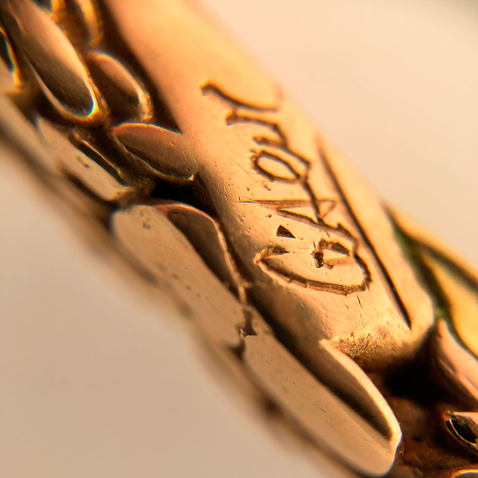 comprising elements in 18ct yellow and rose gold, with a suspension hole for a cord to pass through, 5.7 x 0.4 x 0.3 cm (2 ¼ x 0.5/24 x 0 1/8 in.),engraved César in the middle of one side and stamped with three hallmarks for foreign gold, mixed 18ct gold, and Pascale Morabito maker's mark below: ET in a square, MD in rectangle, and BM separated by a pair of callipers.