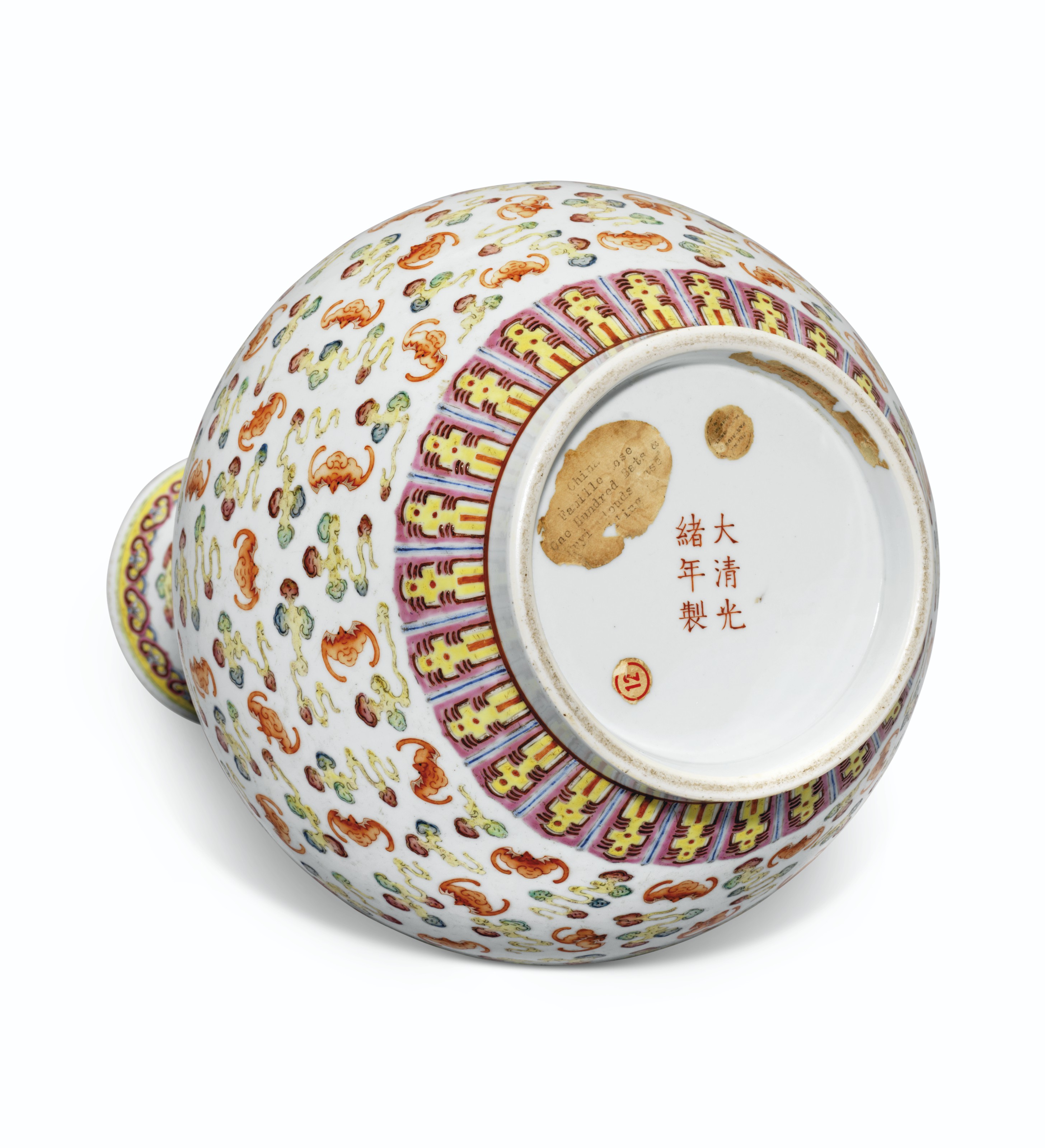 Lot 141. A famille-rose 'Hundred bats' vase, Guangxu six-character mark in iron red and of the period (1875-1908). Hauteur: 39,3 cm. (15 ½ in.). Estimate EUR 5,000 - EUR 8,000. Price realised EUR 20,000. © Christie's Image Ltd 2020.